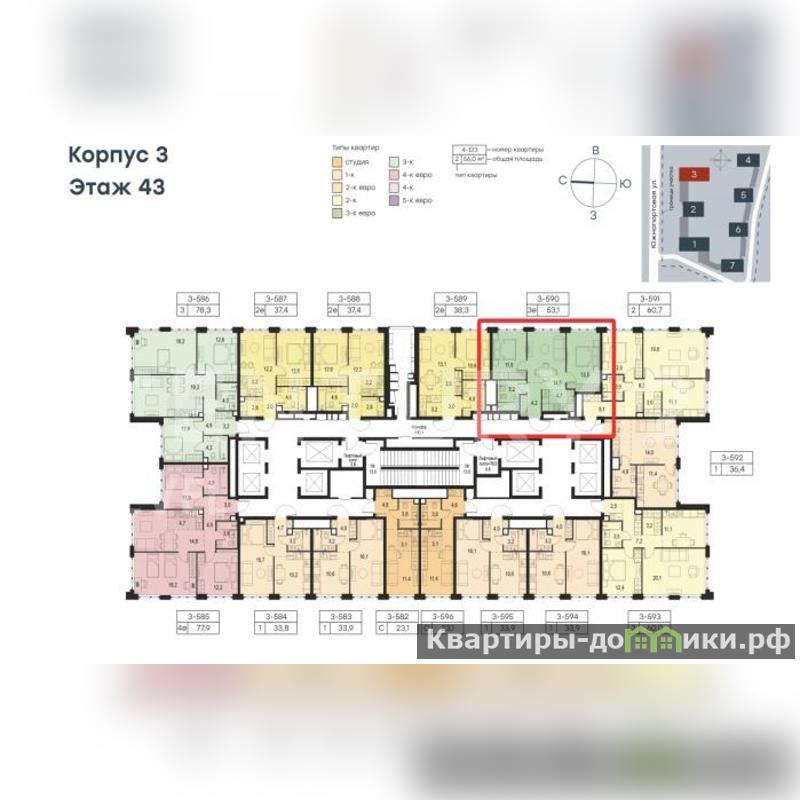 Квартира расположена на 43 этаже 68-этажного корпуса 3 в жилом комплексе комфорт-класса Level Южнопортовая (компания Level Group/Левел групп).