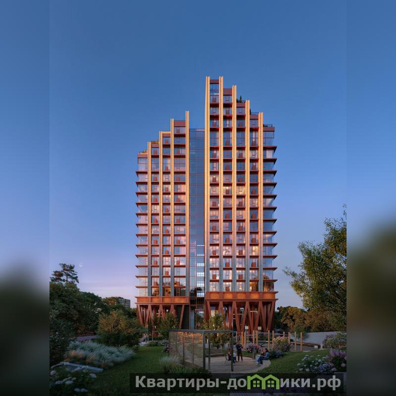 Архитектурный проект нового жилого комплекса был разработан именитым бюро Остоженка. Отделка фасадов выполнена из кирпича и кортеновой стали, что в сочетании с панорамным остеклением, придает ему выразительный облик. Первый этаж запроектирован на высоте 13 метров. Таким образом, просторная входная группа имеет высоту потолков 10 метров, что делает ее интерьер уникальным. Благодаря расположению и продуманной архитектуре из каждой квартиры как на верхних, так и на нижних уровнях будут открываться живописные виды.