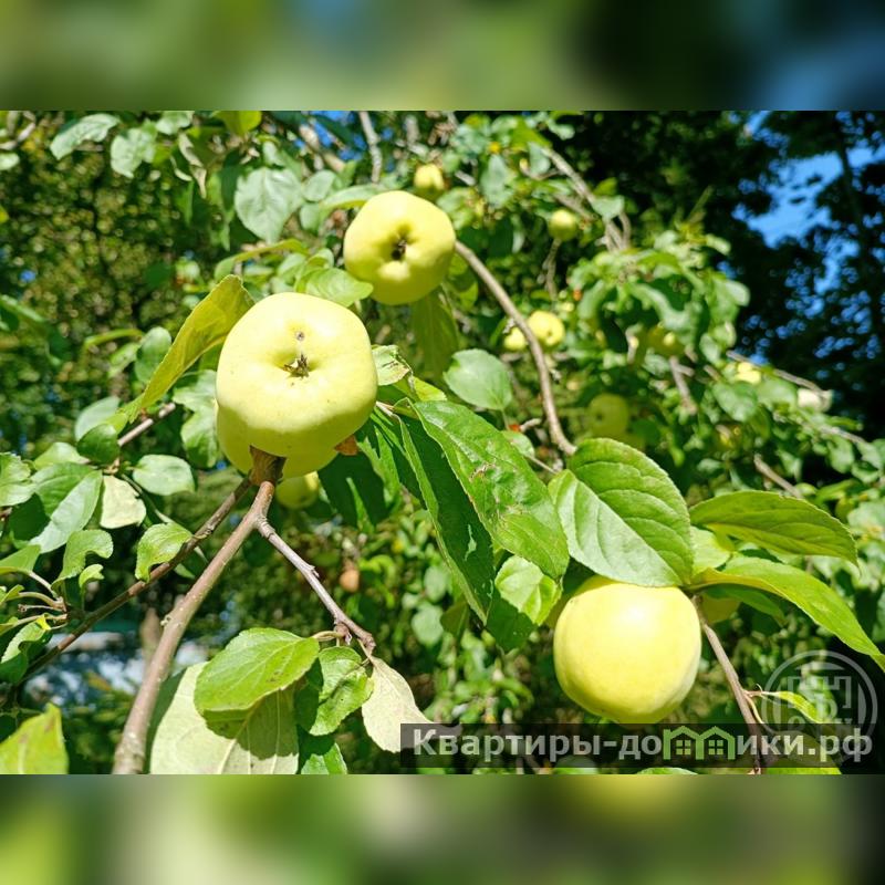 Участок двухуровневый, находится на возвышенности, окружён забором. Здесь высажены яблони, крыжовник, смородина и другие плодовые деревья. Для автомобилей предусмотрено четыре парковочных места.