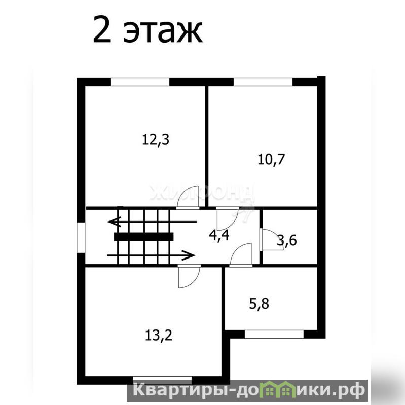 2 этаж: 3 спальни(11м2, 12,3м2, 13,2м2), гардеробная(3,6м2), санузел(5,8м2).