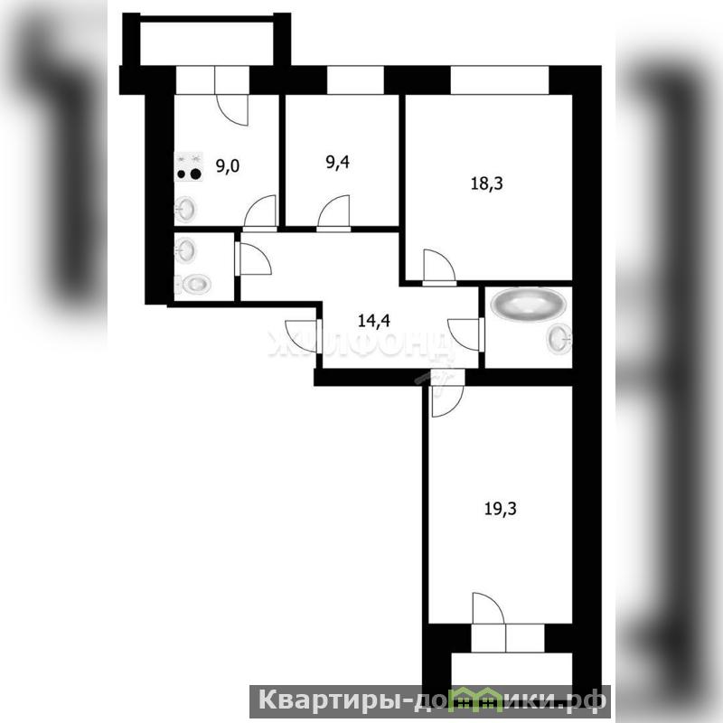 3 комн. квартира по ул. 2-я Обская. Общей площадью: 76.70 кв.м.