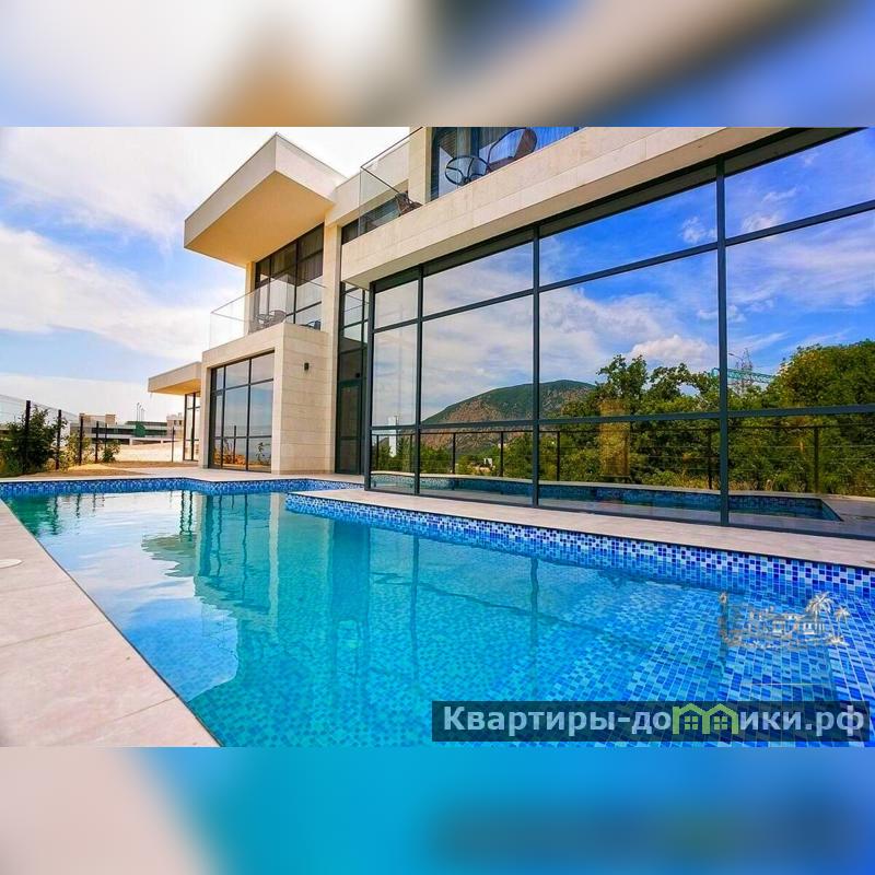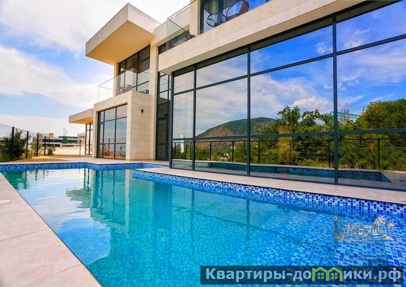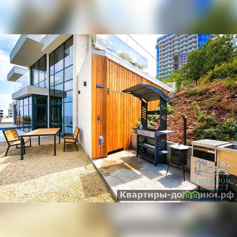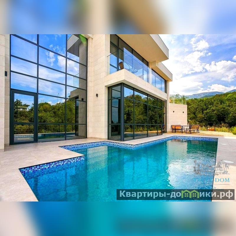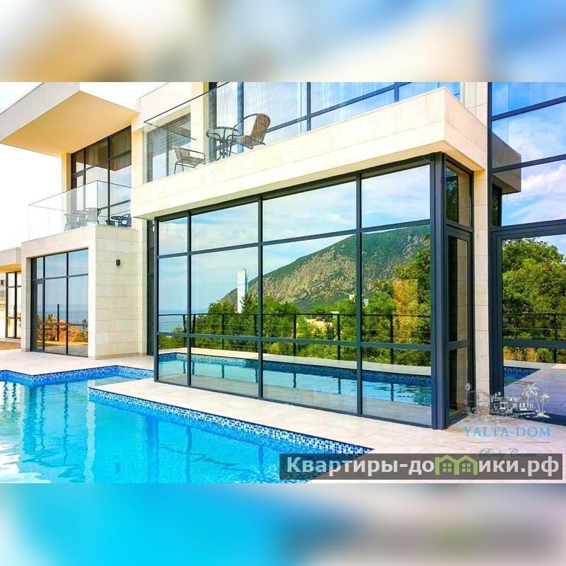 Новая двухэтажная вилла в стиле хай-тек с открытым бассейном с подогревом и сауной, общей площадью 130м2, на участке 5,3 сотки в пгт. Гурзуф. Вилла расположена на закрытой территории комплекса Гурзуф-Ривьера и подходит для комфортного проживания круглый год, из панорамных окон виллы, открывается вид на море и гору Аю-Даг.