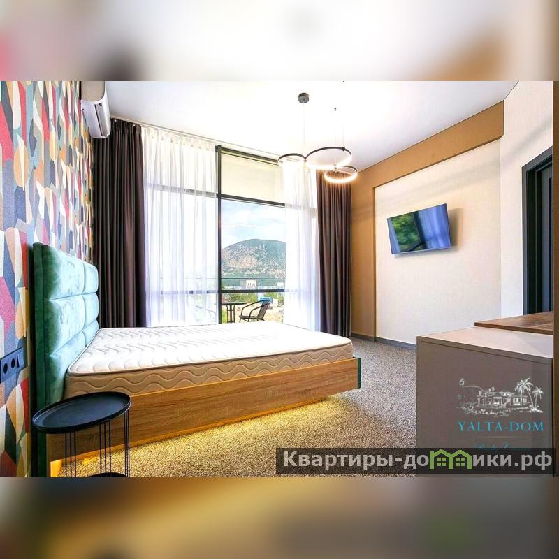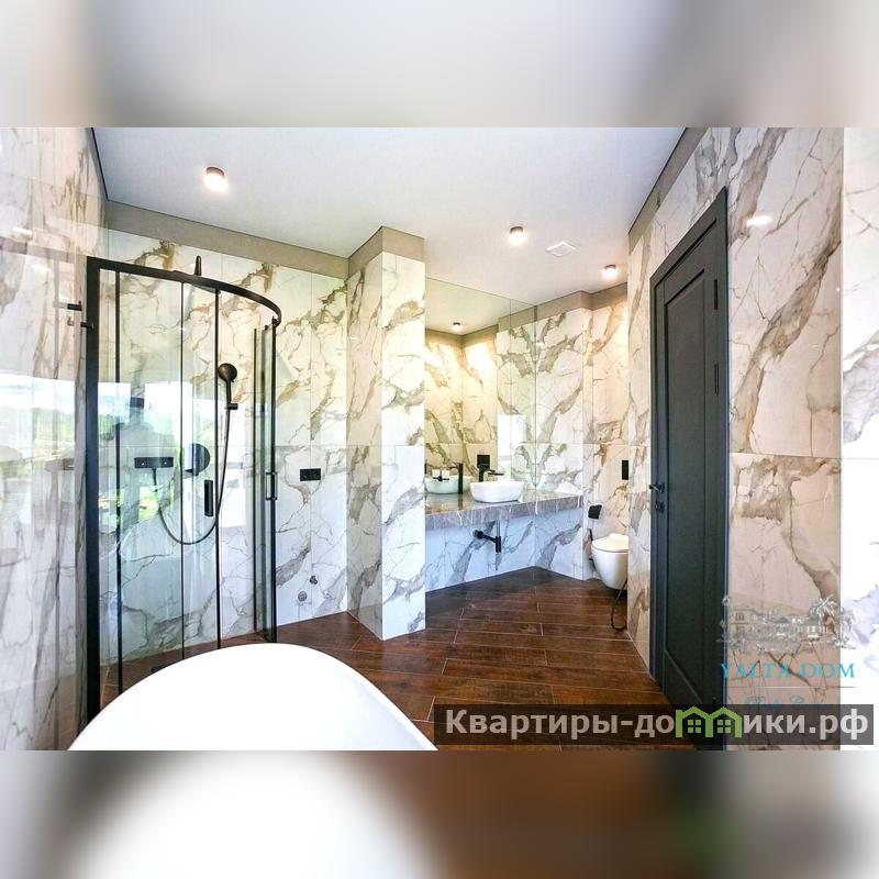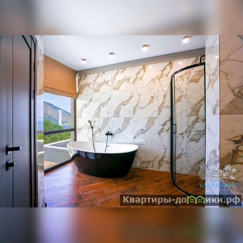 В доме две спальни, обе - на втором этаже: одна спальня с двуспальной кроватью, вторая – мастер-спальня с двуспальной кроватью, детской кроваткой, с собственным санузлом с душевой и ванной. Из всех комнат, включая санузел, - панорамный вид на море и Аю-даг;