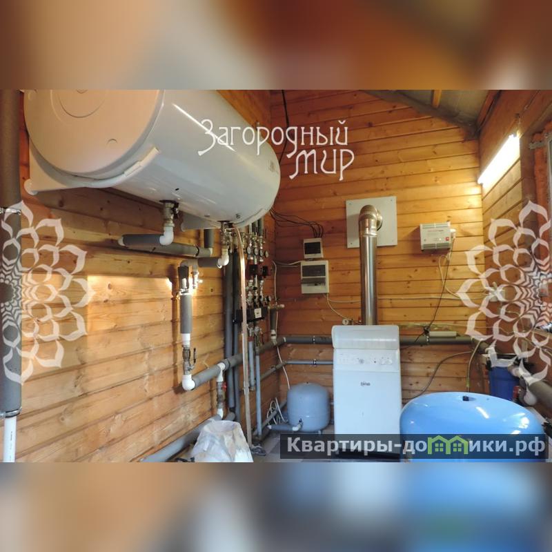 Коммуникации: электричество 15 кВт 3 фазы (электрика, розетки, выключатели - legrand, проводка скрытая в металло-гофре), газ и отопление - газгольдер 6.4 куб.м (конвекторы KERMI, трубы отопления и водопровод -REHAU (сшитый полиэтилен) котел -FEROLLI 45 кВт, атмосферный, бойлер горячей воды 200 л), водоснабжение - 2 колодца, канализация - септик ДКС; эфирная антенна с приемом стереоканалов; интернет.