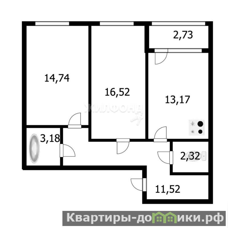 2 комн. квартира по ул. Гоголя. Общей площадью: 60.90 кв.м.