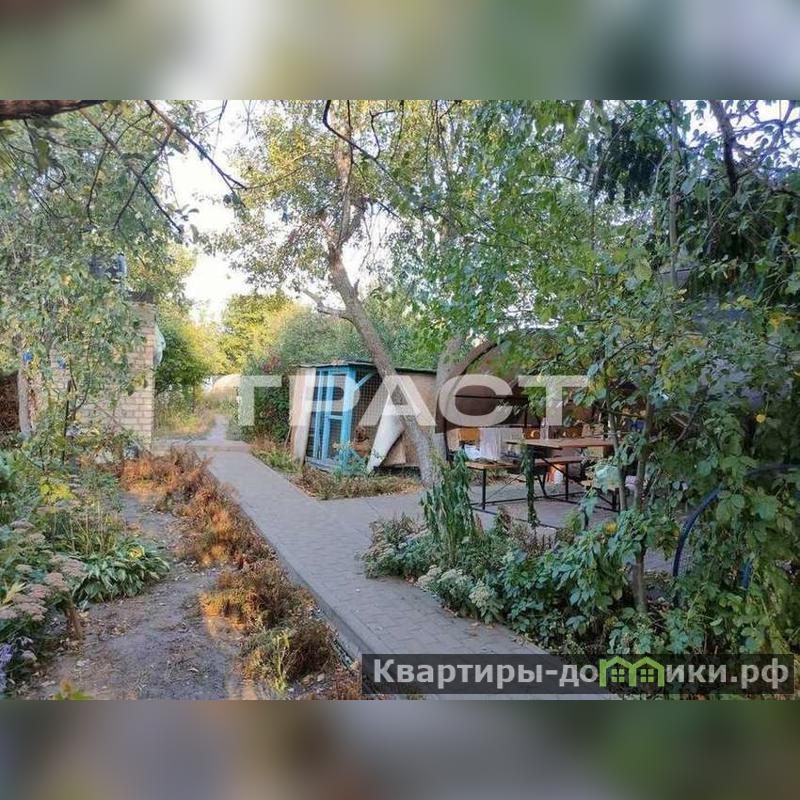 Ухоженный участок с плодовыми деревьями, цветами, выложен тратуарной плиткой.