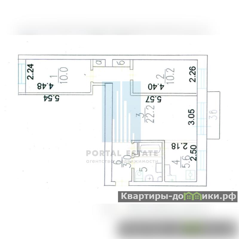Общая площадь 56 м2, жилая 42,4 м2, кухня 6м2. Этаж 3-й (средний) 5-этажного кирпичного дома.