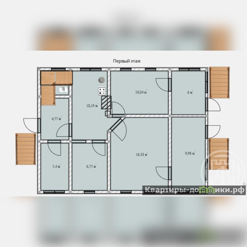 На первом этаже кухня, санузел, кладовая и 3 комнаты. Вся необходимая мебель и техника в наличии.