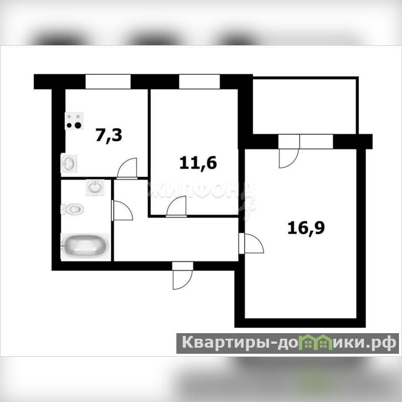 2 комн. квартира по ул. Железнодорожная. Общей площадью: 42.70 кв.м.