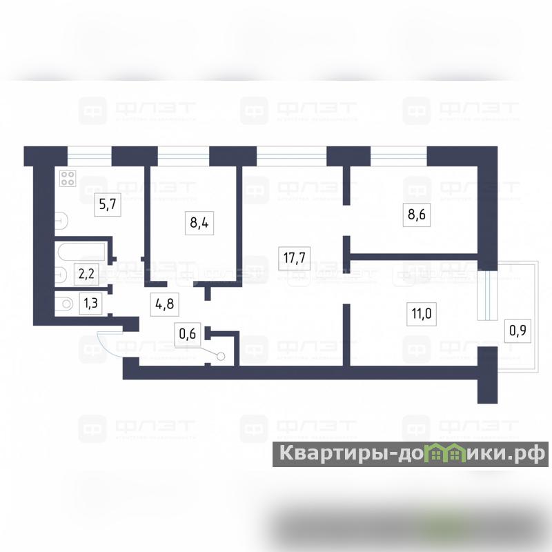 * Простор и свет: Общая площадь квартиры - 60,7 кв.м., жилая площадь - 45,7 м2, кухня - 5,7 кв.м. Комнаты светлые, просторные, окна выходят на две стороны: во двор и на улицу. В квартире есть всё необходимое для комфортной жизни большой семьи.