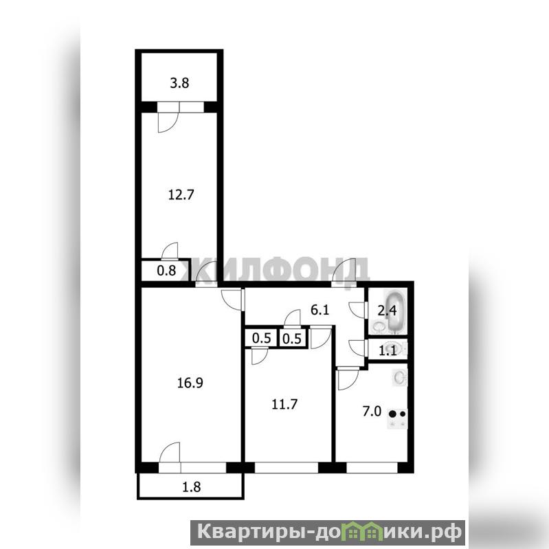 3 комн. квартира по ул. Ленинградская. Общей площадью: 62.50 кв.м.