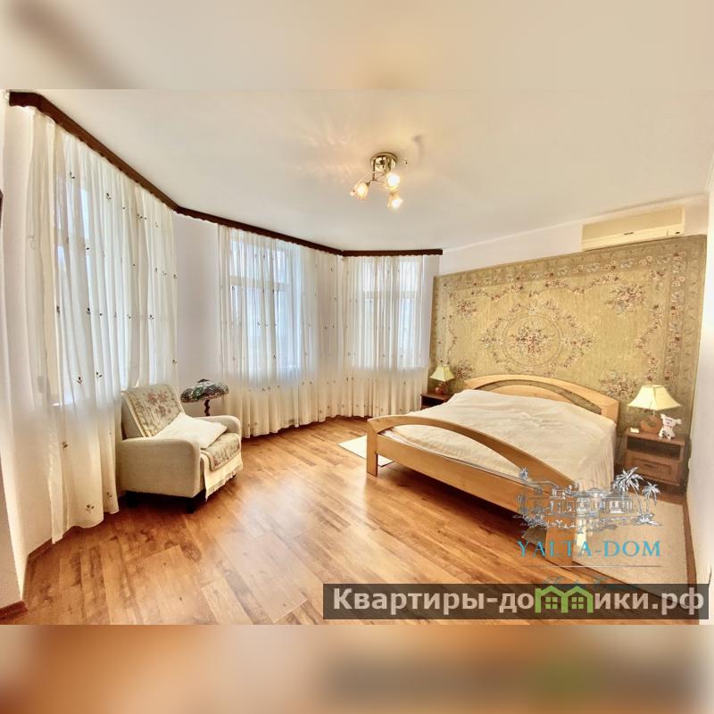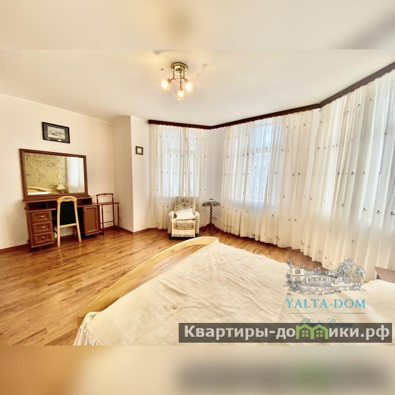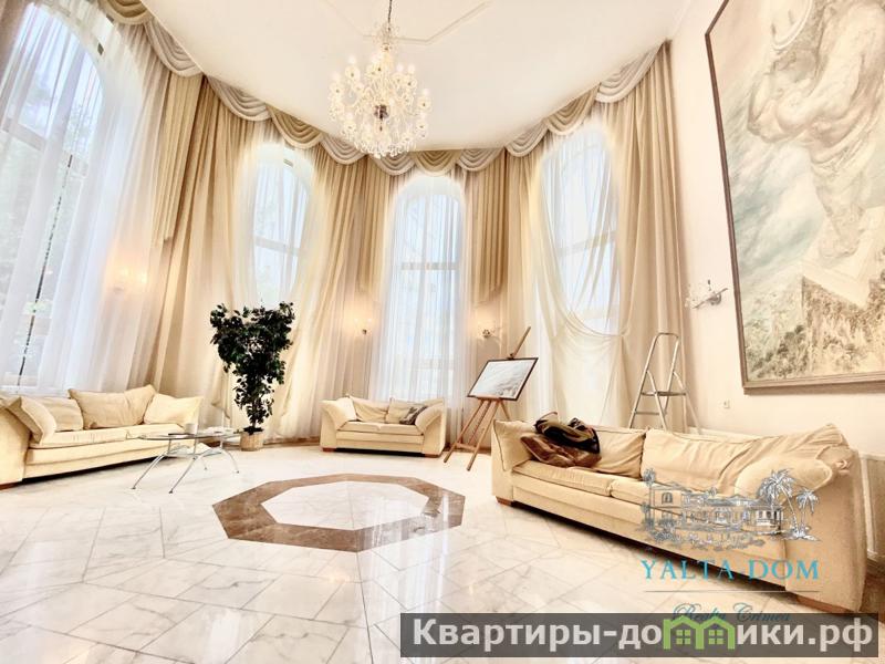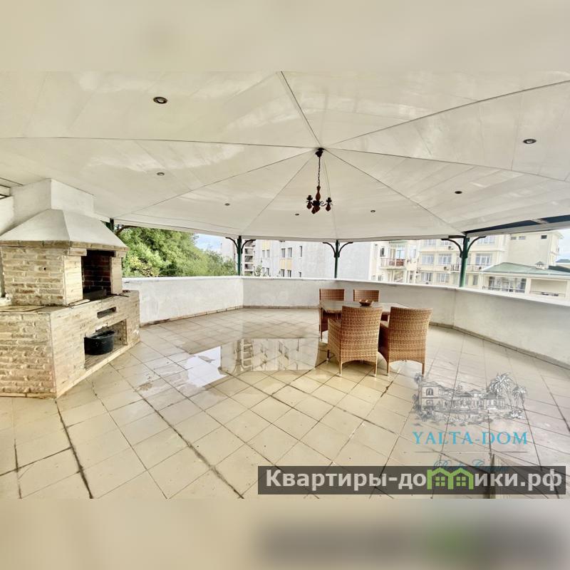 Третий этаж: гостиная, спальня с двуспальной кроватью, с ванной совмещены, бальная комната. Выход на просторную террасу с летней мебелью, оборудованной печью, и прекрасным видом на море. С террасы имеется лестница к видовой ротонде.