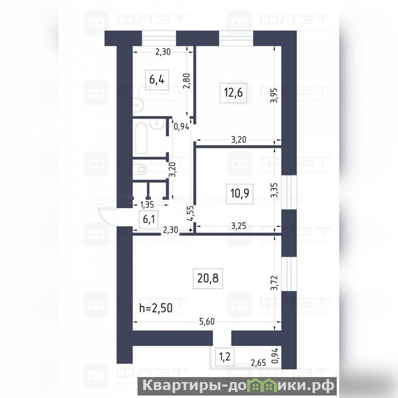 Изолированные комнаты: 1 комната - 20кв.м., 2 комната - 12,6 кв.м., 3 комната -12 кв.м