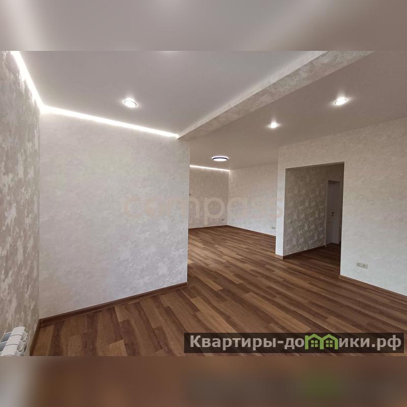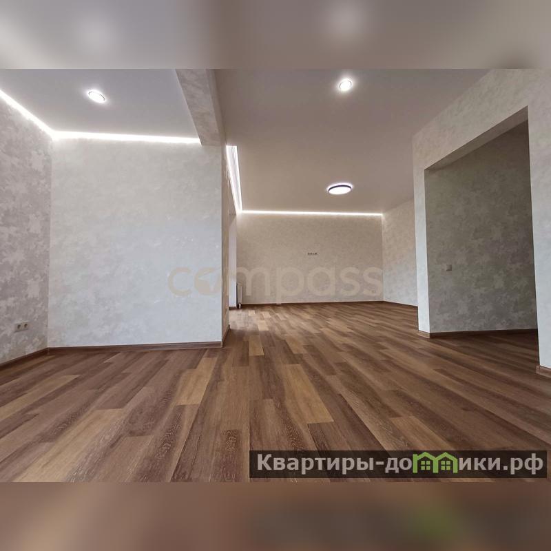 Сделан качественный ремонт: натяжные потолки с точечными светильниками и с подсветкой, межкомнатные двери, ламинат, на стенах обои