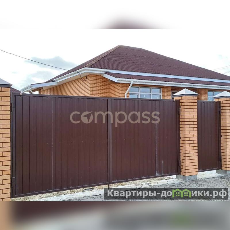 По периметру участок огорожен забором из профнастила, лицевая сторона - кирпичные столбики