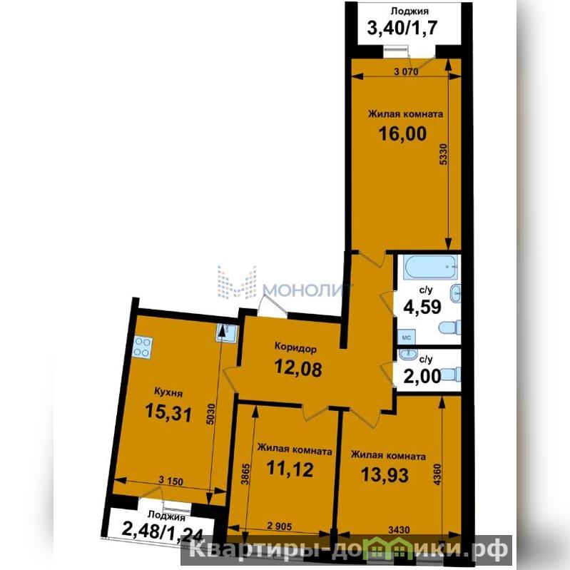 Хорошая планировка, все комнаты изолированные, окна выходят на 2 стороны: