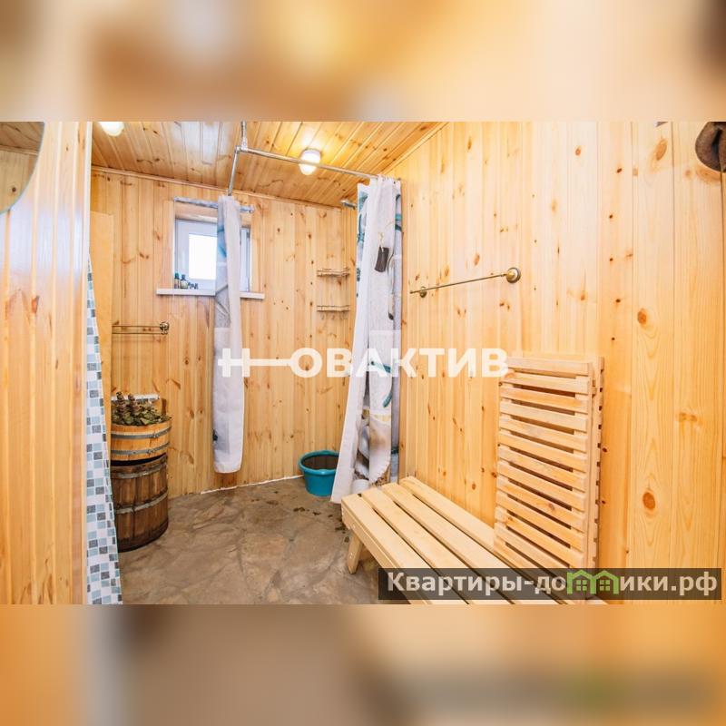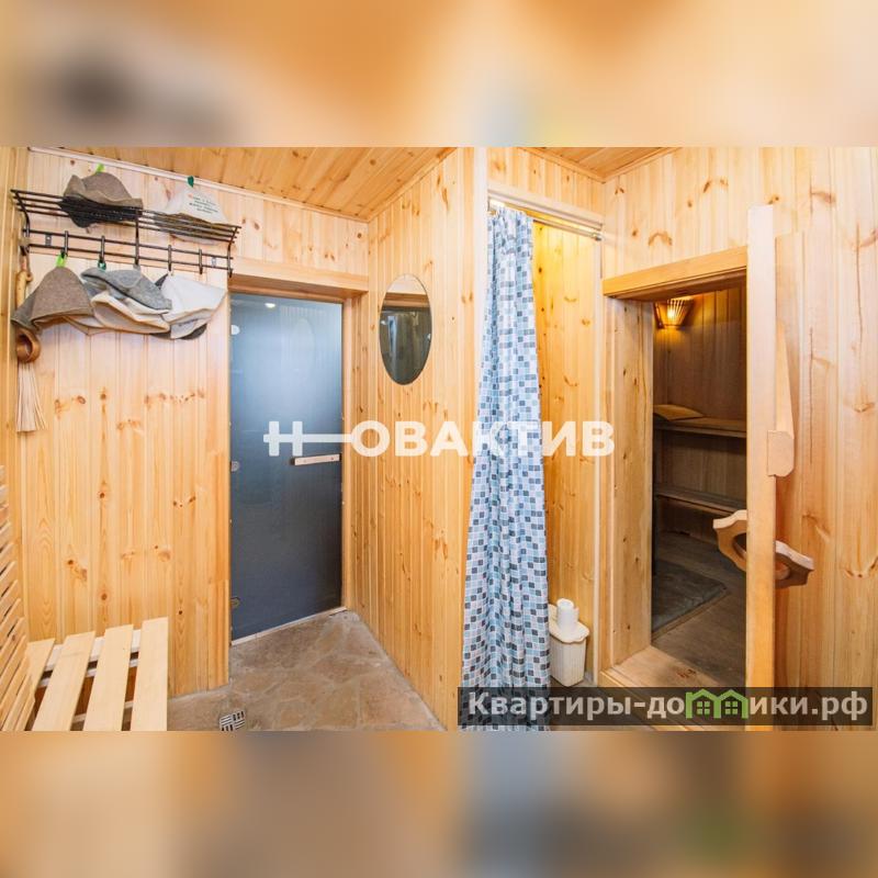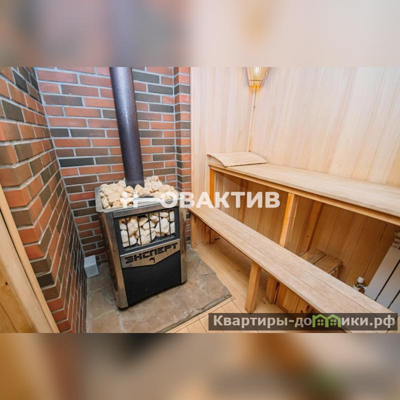 Баня: выполнена из бруса лиственницы (3 венца), остальное - сосна, 20Х20, большая комната отдыха с мебелью, кухней и камином, парилка с печью "Термофор", помывочная и санузел. В бане - теплый пол из натурального камня, который также использован в отделке камина. Установлен свой газовый котел. Мансардный этаж не отделан. Есть возможность расширить площадь бани гостевой зоной за счет мансардного этажа.