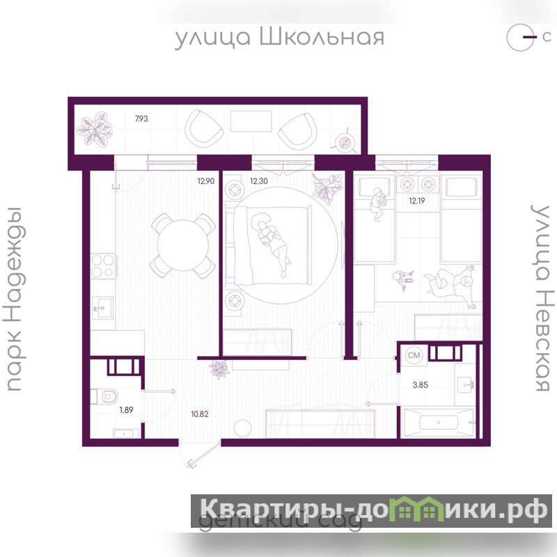 Жилая площадь 24.49 м2, кухня 12.9 м2. Площадь комнат: 12.3/12.19 м2, квартира без отделки, балконов - 1, окна выходят на улицу.