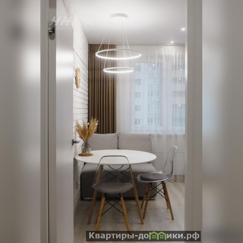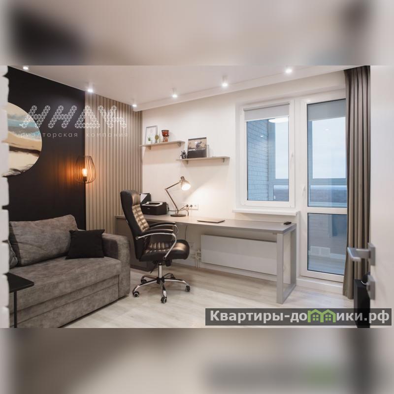 Квартира имеет грамотную планировку, просторный холл, уютная и вместительная кухня, три изолированных комнаты, раздельный санузел, лоджия оборудована под зону отдыха и рабочий кабинет.