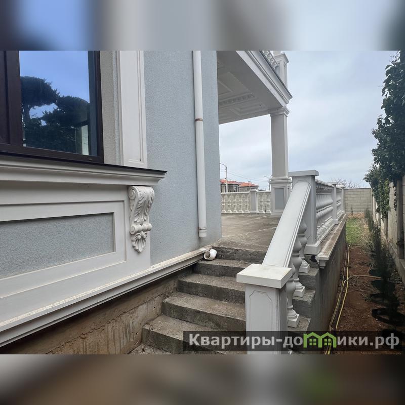 В доме высокие потолки – 3,6 м, все жилые комнаты, кухня и санузлы имеют естественную приточную вентиляцию. Дом построен из ракушки в камень (400 мм) и утеплен минеральной ватой, кровля покрыта цементно-песочной черепицей.