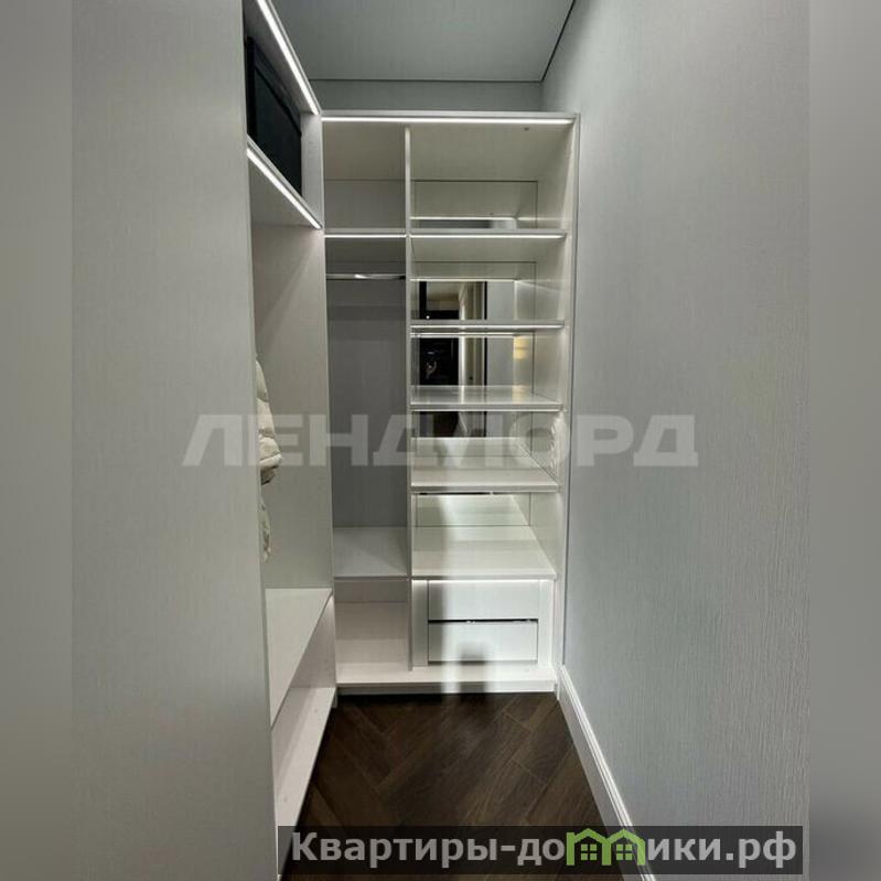 В коридоре огромный продуманный гардероб с подсветкой.