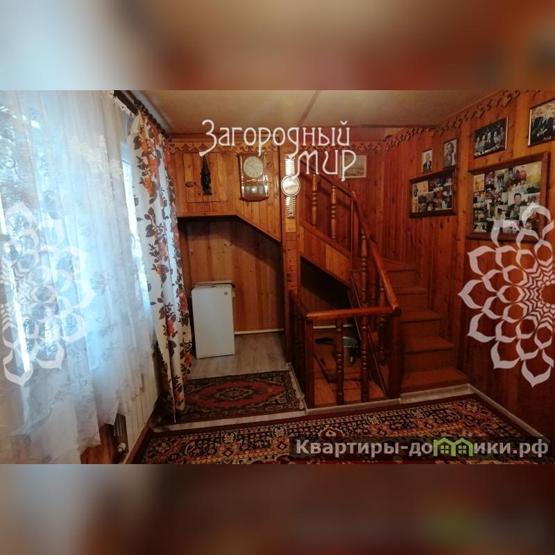 Построенный из бруса, внешне дом отделан облицовочным кирпичом, кровля - металлочерепица, окна - стеклопакеты.