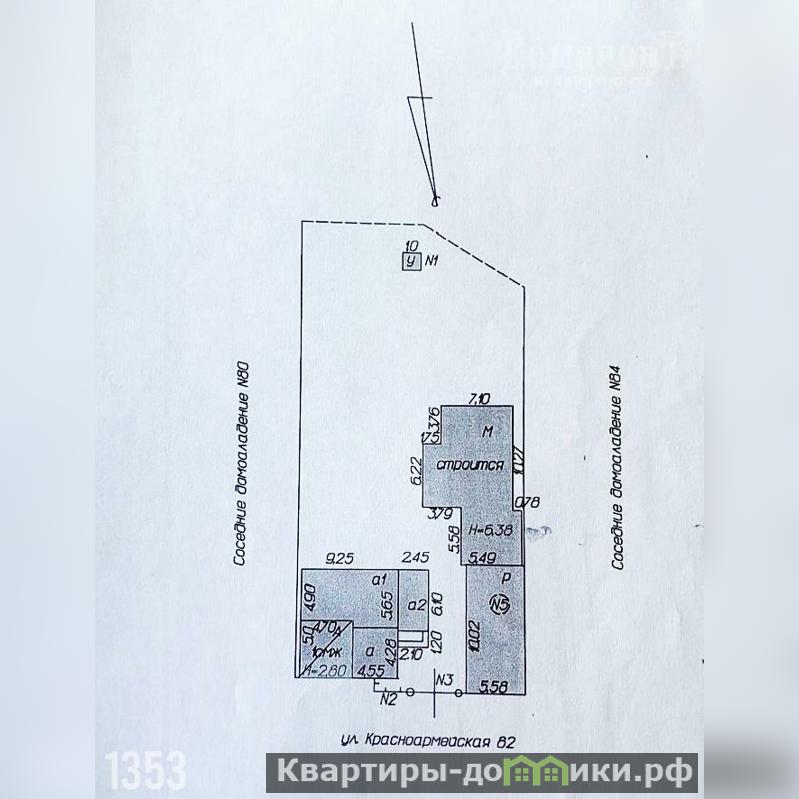 Первый дом одноэтажный - 78,5 кв.метров, второй дом одноэтажный - 79 кв.метров, двухэтажный дом - 196 кв.метров, сарай 27 кв.метров.