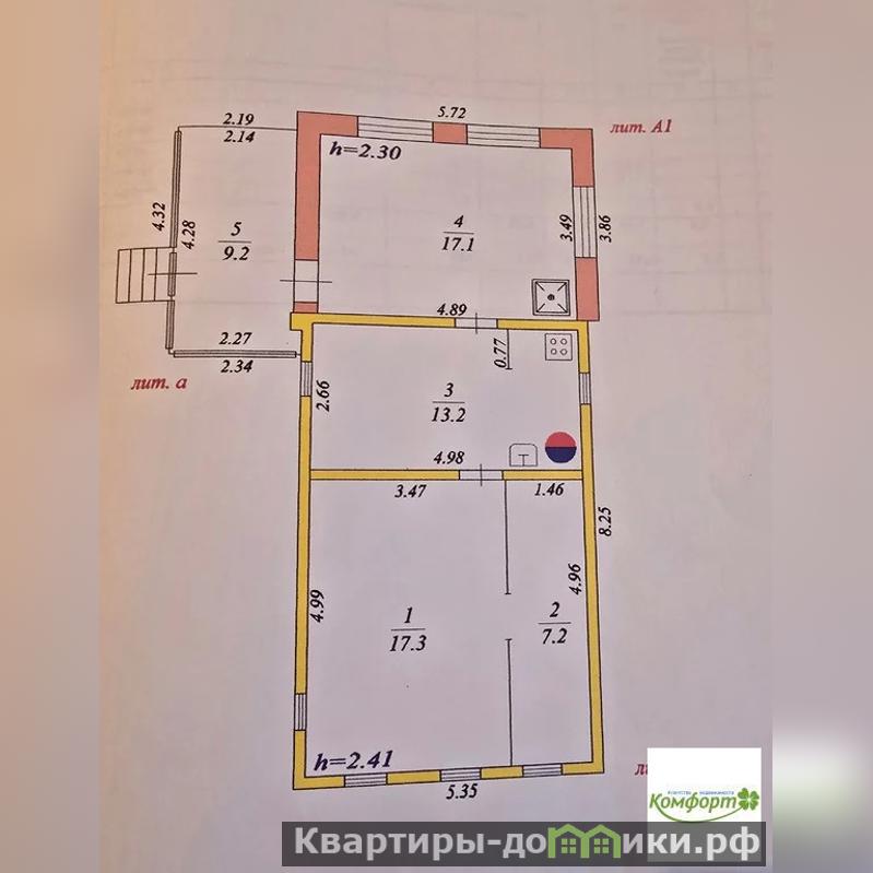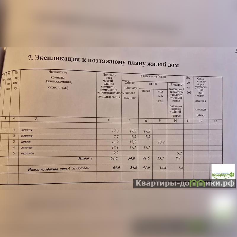Планировка: веранда 9.2 кв.м., жилая площадь 41,6, комнаты 17,1 кв.м./17.3 кв.м./7.2 кв.м., кухня 13.2 кв.м., душевая кабина с санузлом в доме, окна ПВХ.
