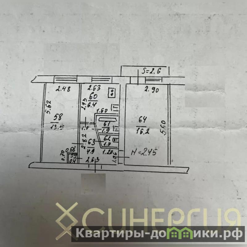 Квартира площадью 46 кв. метров, требуется ремонт, окна выходят на южную сторону.
