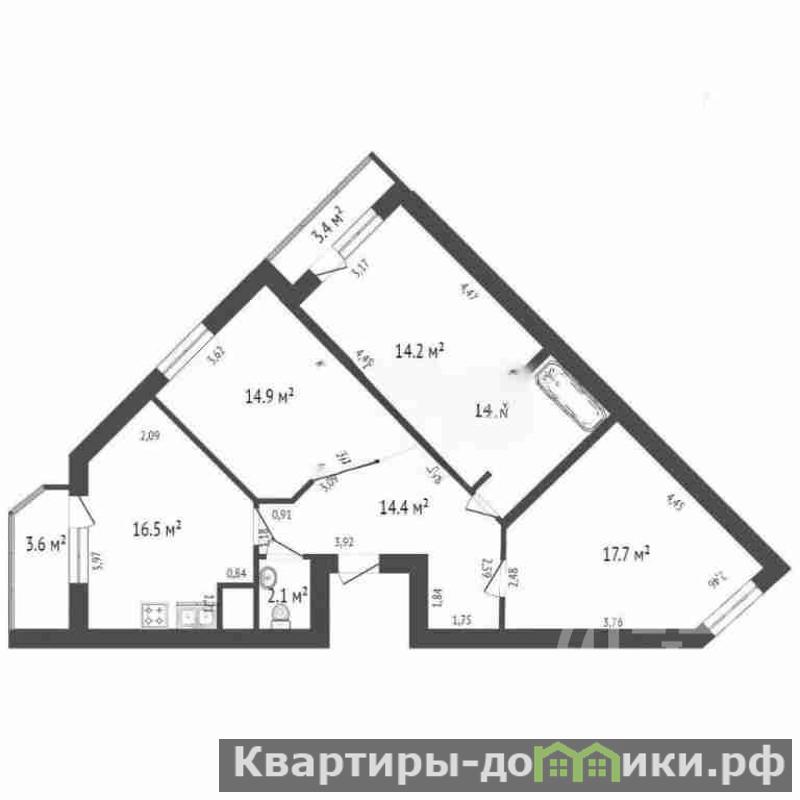 Современная функциональная планировка: 3 изолированные спальни и просторная кухня-столовая 16,5 кв.м.