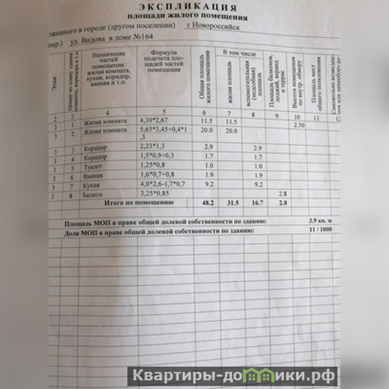 Арт. 90726173 В продаже двухкомнатная квартира в городе Новороссийске, на улице Видова.<br/>Она расположена на третьем этаже пятиэтажного дома и имеет уютную планировку, как в квартирах "чешской" планировки.Квартир такой планировки в этом доме несколько.Общая площадь квартиры 48,2 кв.м. плюс застеклённый балкон 2,8 кв.м.<br/>В квартире просторная кухня площадью 9,2 квадратных метра, две изолированные комнаты (20 и 11,5 квадратных метра), раздельный санузел, прихожая площадью 2,9 квадратных метра и коридор площадью 1,7 квадратных метра.<br/>Состояние квартиры — обычное, жилое., можно жить и делать ремонт под себя или сдавать в аренду.При продаже остаётся вся мебель и техника. Установлена сплит-система.Окна металлопластиковые.Перепланировок в квартире не было.<br/>Холодная вода без перебоев, а горячая — через газовую колонку. Все коммуникации центральные.<br/>Дом находится в спокойном спальном районе. Подъезд чистый, с окнами МПО. Установлен домофон.Соседи хорошие,приветливые.Двор зелёный с лавочками и детской площадкой.<br/>В непосредственной близости расположены школы № 40, 34, Гимназия 4, школа "Личность", детские сады, магазины, остановки, аптеки,почта — всё необходимое для комфортной жизни.<br/>Обременений нет. Документы в порядке.Звоните!<br/>