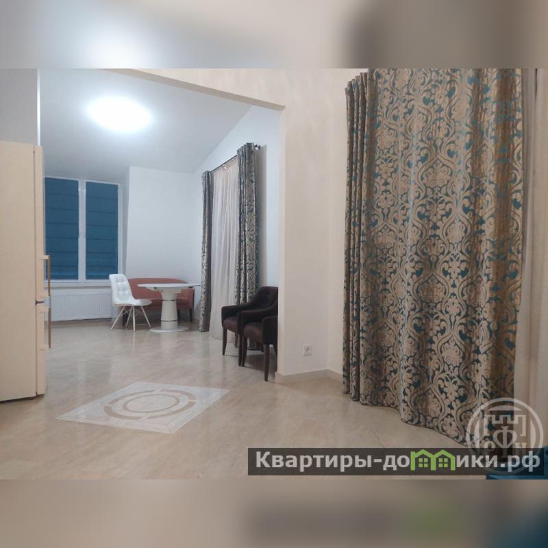 + Красивая кухня с плитой и посудомоечной машиной.