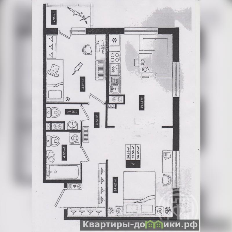 + Большая кухня-гостиная 14,7 кв. метров