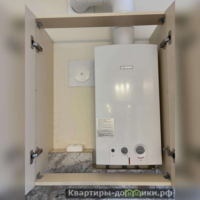 Кухня – 6 кв.м,- вся техника и мебель останется. Установлен проточный водонагреватель газовый с автоматическим электрическим поджигом - Bosh