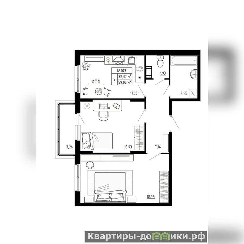 Продается 2-комн. квартира, площадью 59.05 м2 в малоэтажной в монолитной новостройке в 20 мин. транспортом от м. Проспект Ветеранов. Возможен вариант покупки с использованием ипотечных средств, есть рассрочка, возможна покупка с использованием материнского капитала.