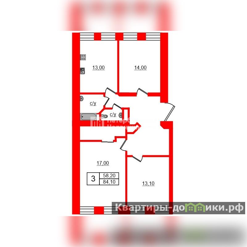 | 17 + 13.1 + 14 м2 | |
