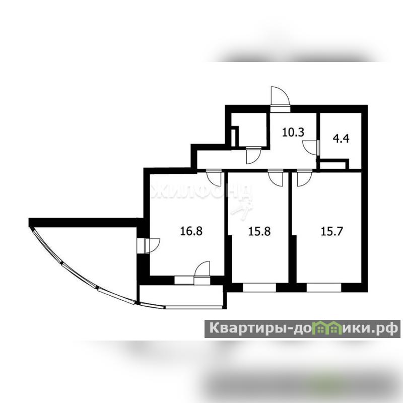 Кухня-гостиная (15,7 кв.м.), жилая комната (15,6 кв.м.) и ещё одна жилая комната (16,8 кв.м.), просторная входная зона-прихожая (10,3 кв.м.), сан.узел (4,4 кв.м.), две застеклённые лоджии, одна из которых утеплена (13,5 кв.м!) и может использоваться как полноценная жилая, например детская-игровая.