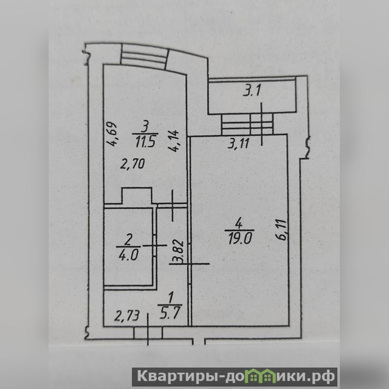 Квартира расположена на 4- этаже 10-этажного кирпичного дома. Общая площадь 43.3 кв.м, кухня 11.5 кв.м. с/у совмещенный, высота потолков 2.8 м.