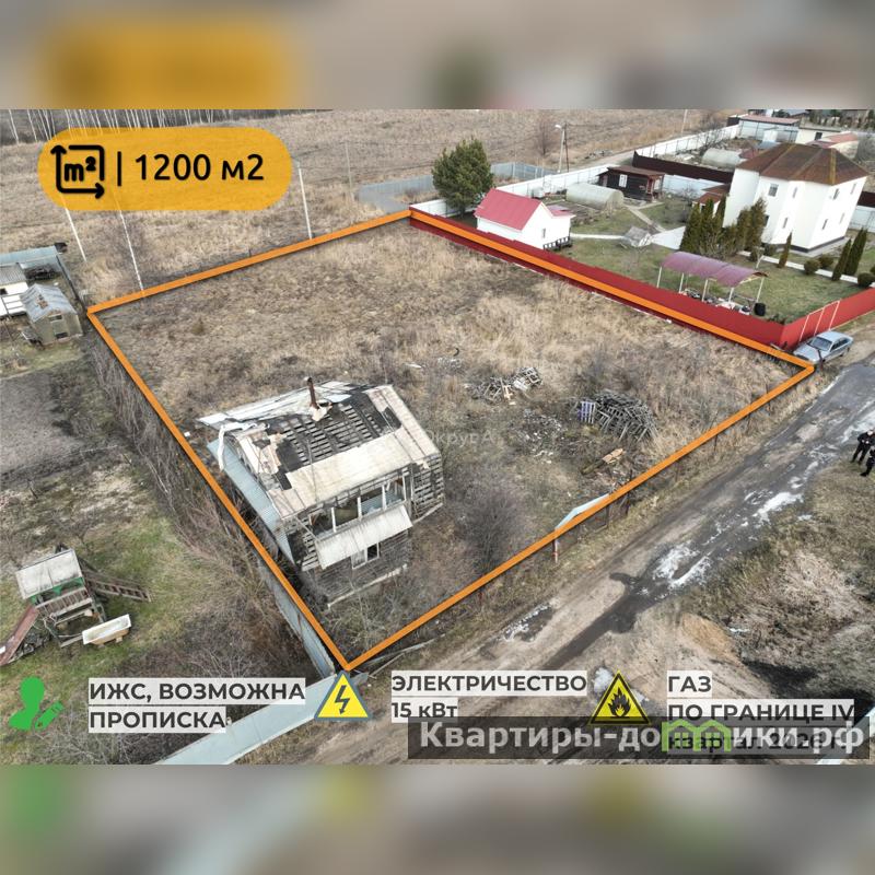 На участке имеется недостоенный домик из сруба: надежная конструкция, можно достроить, электричество подключено.