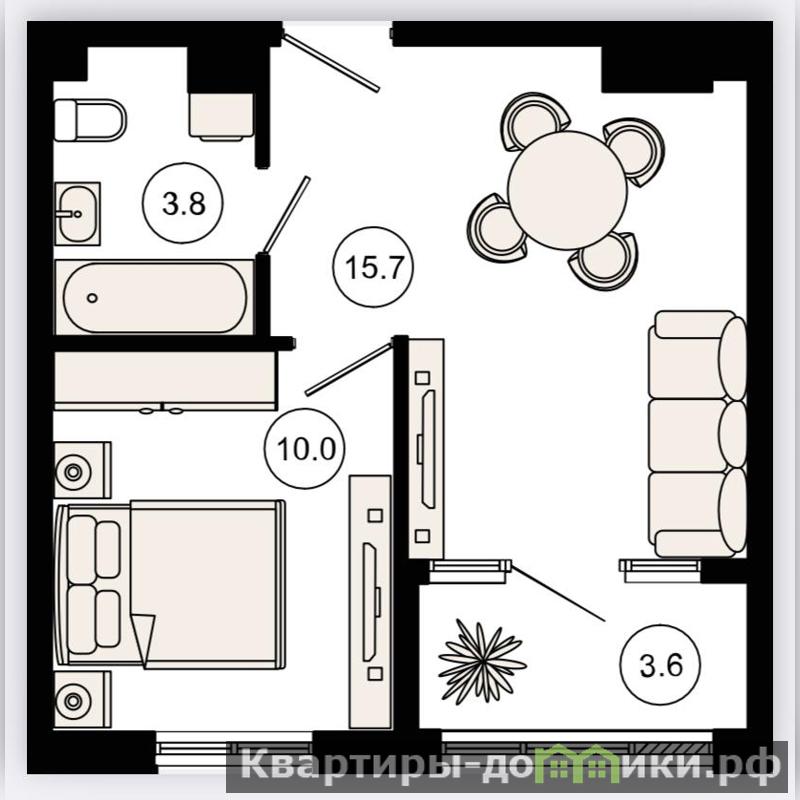 - Площадь 33,4 м2