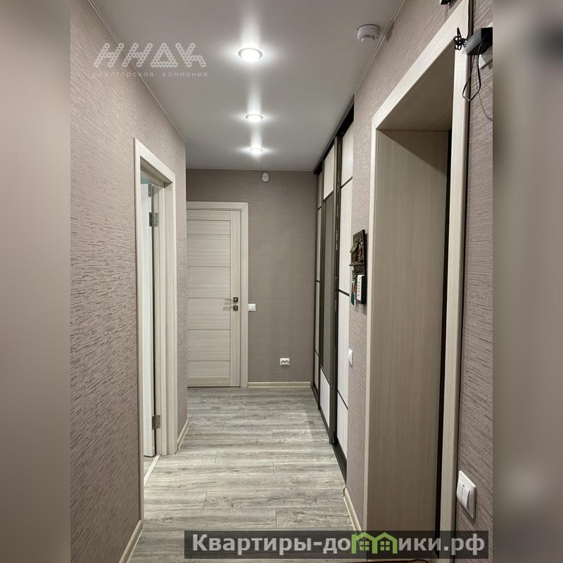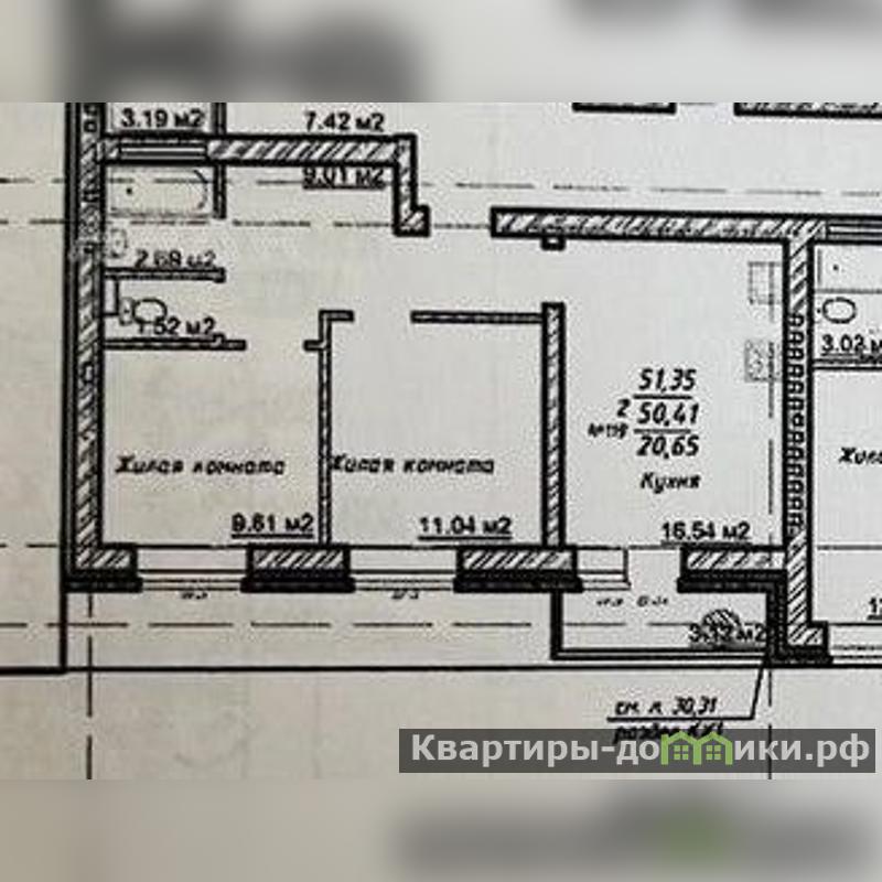 Квартира европланировки общей площадью 51,9 м (фактически трешка : кухня-гостиная 16,5 м, две комнаты 9,6 и 11 метров, совмещенный санузел, в коридоре большая ниша под шкаф, застекленный балкон.