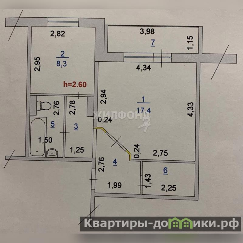 1 комн. квартира по ул. 15-й микрорайон. Общей площадью: 44.80 кв.м.