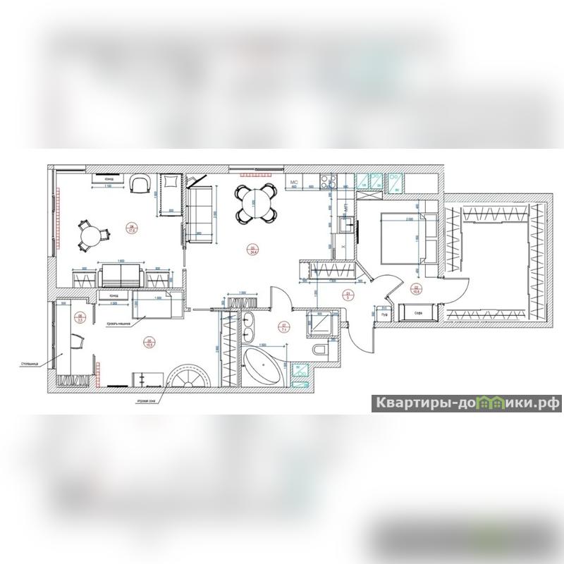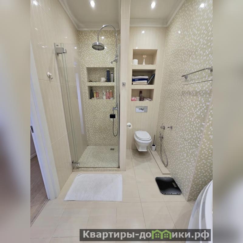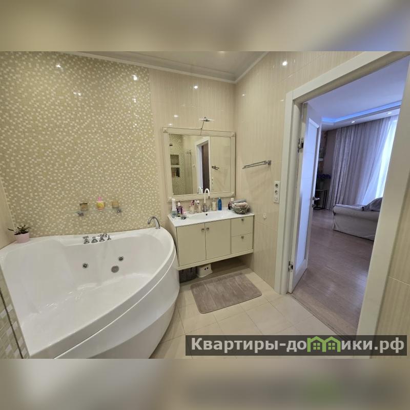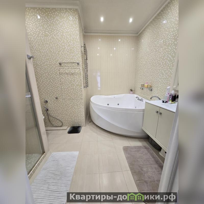 В квартире выполнен качественный и дорогой ремонт, делался под себя. Общая площадь 82, 8 кв. м (по факту 100 кв. м), кухня-гостиная 24, 4 кв.м, комнаты: 18,8; 17,6 и 10,6 кв.м., с/у совмещенный (установлен и душ, и большая ванная), большая гардеробная (20 кв.м) на дополнительной площади дома. В квартире панорамные окна с красивым видом во двор на две стороны света.