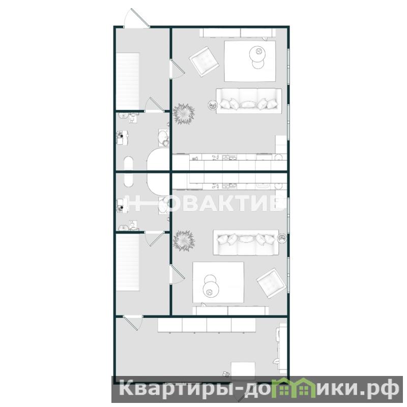 Вторая половина дома зеркальна первой, кроме веранды и второго этажа, на втором этаже разделение на 2 спальни.