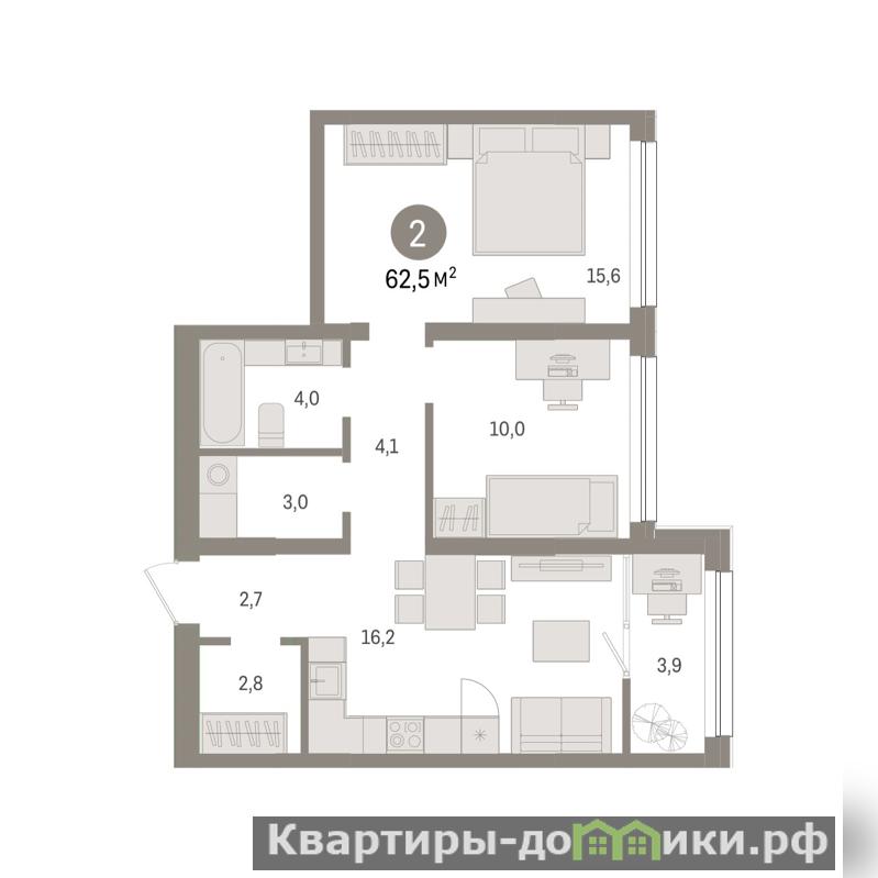 Квартира с кухней-гостиной и двумя спальнями в жилом районе Зарека. Особенности планировки: панорамное остекление, тёплая лоджия, ремонт в подарок, постирочная.