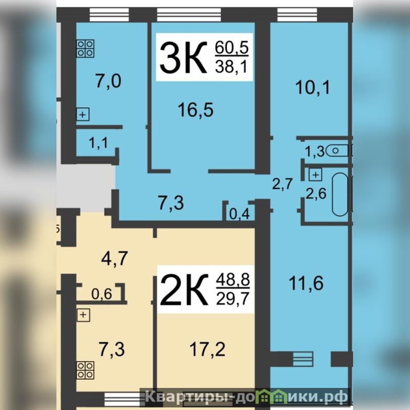 - Комнаты изолированы 16,5 + 11,6 + 10,1 кв.м.