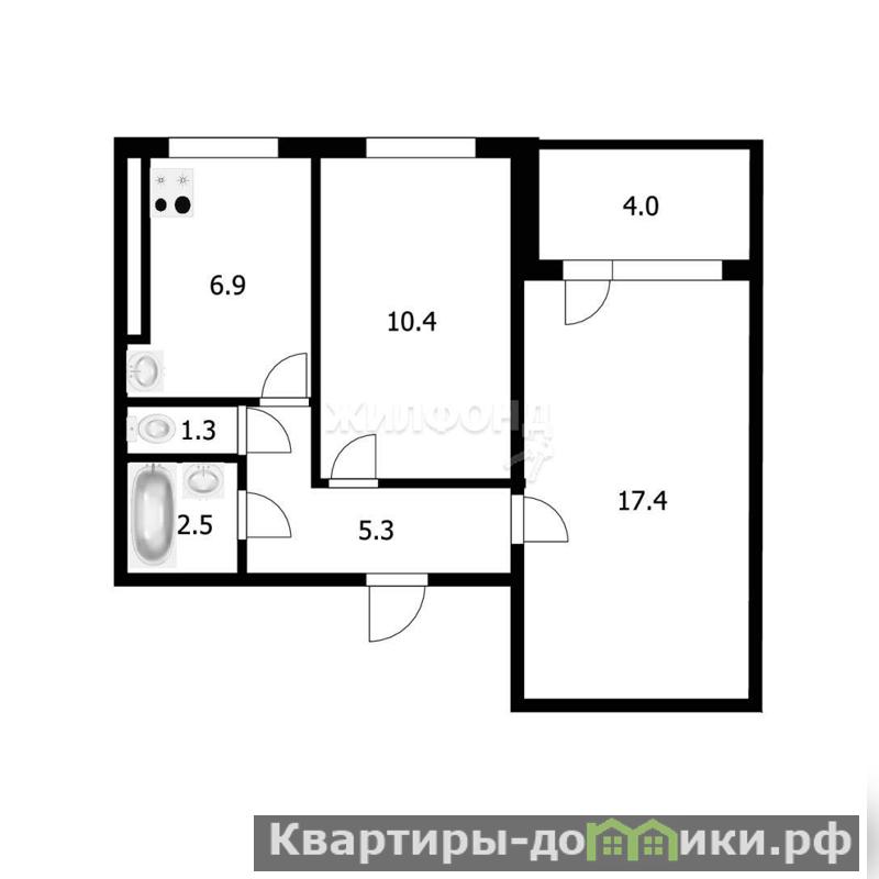 2 комн. квартира по ул. Бориса Богаткова. Общей площадью: 43.80 кв.м.
