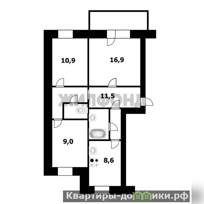 3 комн. квартира по ул. Новосибирская. Общей площадью: 63.70 кв.м.
