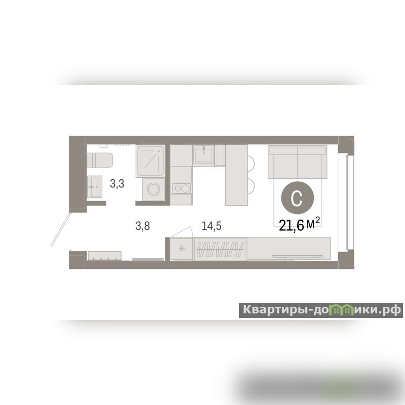 Студия в жилом районе Республики 205. Особенности планировки: предчистовая отделка.