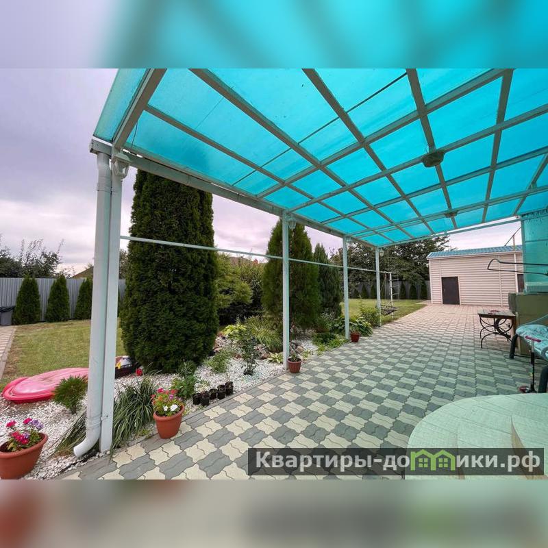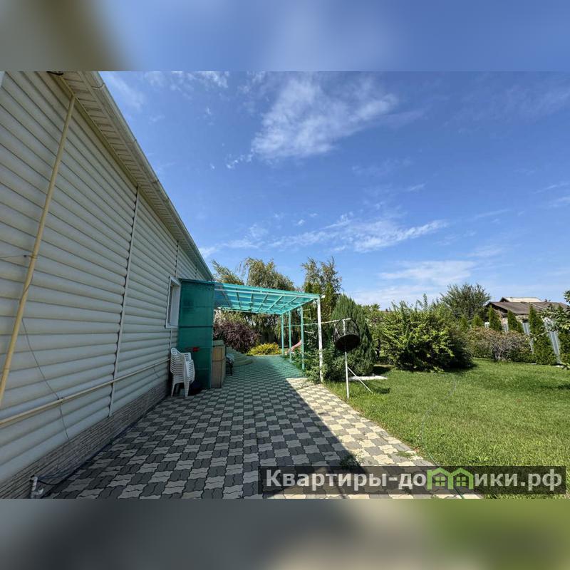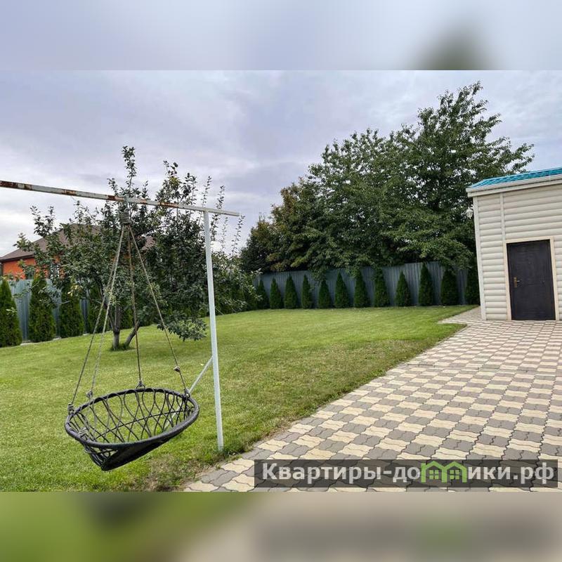 Участок ровный,ухоженный,засажен газоном,декоративными кустарниками,туями и елями.Так же есть виноград,слива,ежевика.Стоит автоматическая система полива.